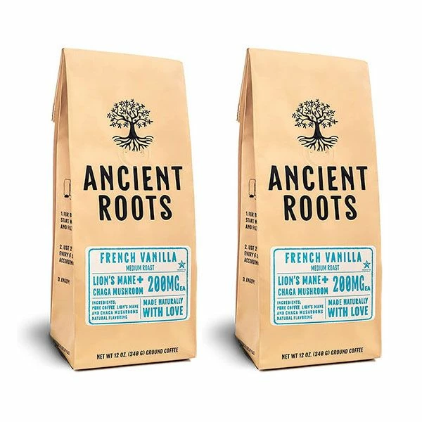 Ancient Roots French Vanilla Flavored Mushroom Coffee – French Vanilla Coffee by Corim Premium Blends 2/12 Oz Bages