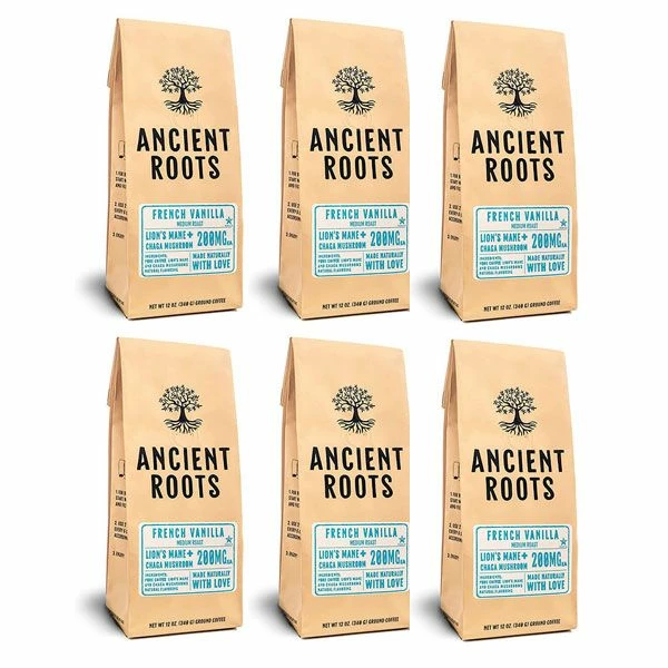 Ancient Roots French Vanilla Flavored Mushroom Coffee – French Vanilla Coffee by Corim Premium Blends 6/12 Oz Bages