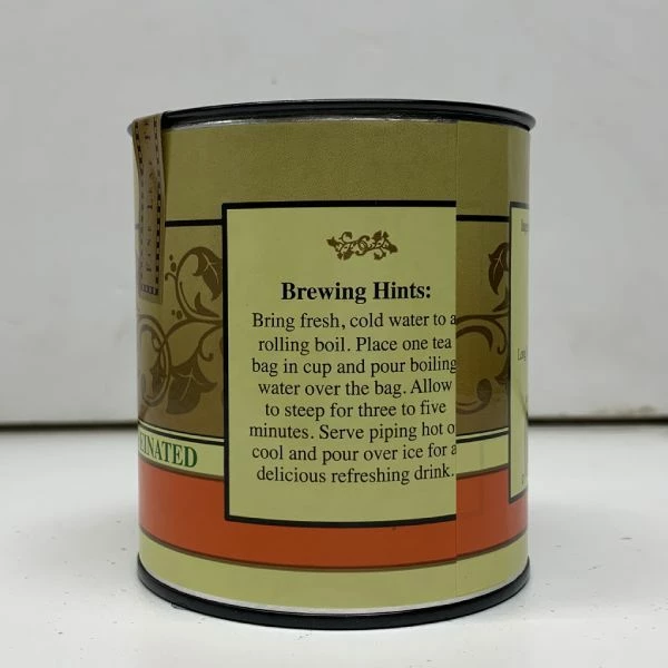 The decaffeinated apricot tea comes in tins, with each tin containing 25 tea bags. Each tea bag weighs approximately 1.46 ounces (41 grams). This specific blend is categorized as a light black tea, known for its subtle sweetness and soft, relaxing taste. It can be enjoyed as is or customized with additions such as milk and honey according to personal preference.