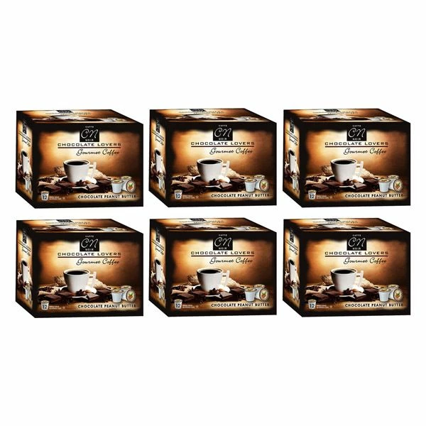 This sale is for six 12 count boxes of Chocolate Peanut Butter Caffe Noir Gourmet Coffee Single Serve Beverage Cups