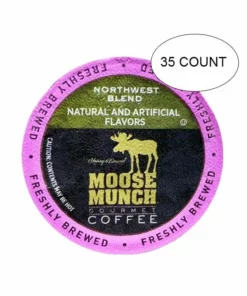 Moose Munch Coffee by Harry & David offers a delightful and flavorful coffee blend known as the Northwest Blend, packaged in a box containing 35 single-serve cups. This coffee blend is inspired by the natural beauty and rich coffee culture of the Pacific Northwest, delivering a unique and satisfying coffee experience.
