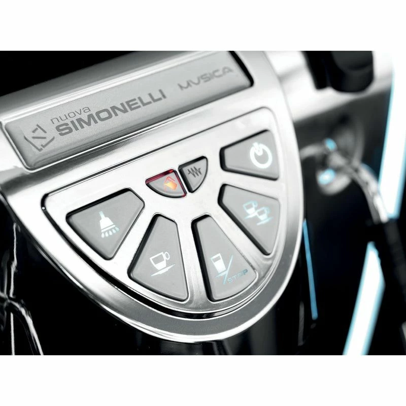* Beyond Point Charges: If Nuova Distribution USA does not have a service technician within 3 hours driving time of the install location, extra travel charges will apply. Overtime charges: Installation must occur during regular business hours (Monday through Friday, 8AM to 5PM). Additional charges will apply for installations outside of regular business hours. Who Should Buy The Nuova Simonelli Musica?Home UserThis prosumer espresso machine doesn’t just simulate a professional experience—it is the professional experience. The Nuova Simonelli Musica is packed with commercial features and functions like dual volumetric and manual dosing, pre-infusion, indicator lights, and a boiler pressure gauge. An energy-efficient heat exchanger system means fast warm-ups, making a shorter wait time for your morning latte. Bring the cafe to your kitchen with the Musica. Small CafeSmall coffee shops are getting the best of automatic and semiautomatic models in the Musica with combined volumetric and manual dosing. Baristas can pull espresso shots with the programmable volumetric single and double buttons for greater efficiency and consistency. But if a customer requests a custom espresso shot, baristas have the power to accommodate with the manual button. Temperature stability, flexible extraction controls, and optional LED accents make the Musica the perfect choice for small cafes looking for high performance and a visually striking machine for their customers to admire. Small RestaurantThe beauty of the Musica is not just in its outer shell. It’s also in its simplicity for the user. If your restaurant staff lacks barista training, the Musica is an ideal solution. The volumetric controls are straightforward and easy to learn for total beginners. Meanwhile, the manual button provides more advanced functionality for those special drink orders to really wow your customers. The right size with the perfect capacity for a small restaurant, the Musica takes up little counter space while offering top quality espresso drinks with simplified operation. Mobile LocationNeed a portable espresso machine for your mobile business? Whether you’re catering an event, setting up a food truck, or making lattes at the farmers market, the Pour-Over Musica is the answer. Since this version of the Musica doesn’t need to be hooked up to a water line, it can go anywhere. Give your customers commercial-quality results wherever you go. OfficeOffice employees have serious caffeine requirements. Provide them with a coffee shop experience right at their desks. The Musica is so easy to use, anyone can learn how to make a cappuccino or Americano. Save those expensive trips to the coffee shop (they add up, don’t they?) and supply all the espresso drinks right in the office. DescriptionThe Musica proves that elegance and quality go hand-in-hand.Refined beauty, compact size, and professional quality define the Nuova Simonelli Musica. With unique styling and versatile options, the Musica comes in a variety of configurations tailored to every coffee enthusiast’s needs. THE MUSICA IS THE BARISTA’S ESPRESSO MACHINE.Producing high-quality espresso and silky microfoam with powerful steaming, the Musica is a small machine delivering big-league results. This model’s sophisticated features give anyone the opportunity to become a true barista and make excellent espressos and creamy cappuccinos. NUOVA SIMONELLI IS A TOP NAME IN THE INDUSTRY.Having been named an official brand of the World Barista Championship, Nuova Simonelli is associated with quality and innovation. The Musica carries the company’s reputation for excellence—and it delivers. *Grinder in picture not included. Key Features and What They MeanButton Pad with Backlit Soft-Touch ButtonsThis elegant button pad features backlit volumetric and manual dosing buttons with adjustable brightness levels. The volumetric dosing system stores up to three different dose settings for speedy selection and variety (and increased efficiency in a cafe setting). Indicator LightsThe Musica’s indicator lights relay information about the water level and heating element to the user. They’ll light up when the water level is too low and the heating element is on to help you perform maintenance tasks and use the machine safely. Thermo-Compensated GroupThe thermo-compensated group creates temperature stability for optimal brewing. Continuously circulating the hot water creates the perfect thermal environment for shot after shot with consistent quality. Insulated 2 Liter Copper Heat Exchange BoilerThe 2 liter heat exchange boiler supplies a ton of steam power (you can brew and steam at the same time on the Musica). A natural heat conductor, copper increases the boiler’s energy efficiency along with the insulation. Naturally antimicrobial, copper also increases the sanitation of the unit. Pre-Infusion SystemPre-infusion allows all of the noble substances in the coffee to be fully extracted. Immersing the coffee puck in hot water before the full pressure of water hits it, pre-infusion also prevents channeling and settles the coffee. This means that improper tamping is far less likely to affect extraction. Programmable Hot Water NozzleThe independent hot water nozzle makes it possible to prepare Americanos, teas, and other hot beverages in seconds. Programming the hot water wand for set doses of water allows baristas to take multitasking to greater heights. Push Pull Steam LeverThe ergonomic design of the push-pull steam lever ensures more comfortable steaming for those with sensitive wrists. There are no knobs to twist and turn. A gentle push of the steam trigger into the on and off positions is all that’s needed. Articulating Steam WandThe steam wand will move in any direction you need it to, allowing you to find the optimal angle for the milk pitcher. This guarantees greater success in creating the smoothest microfoam. LED EdgesA feature of the “Lux” version of the Musica, the illu